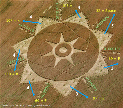 are written in eight-bit ASCII code, and seem to identify the crop artist as