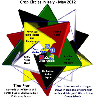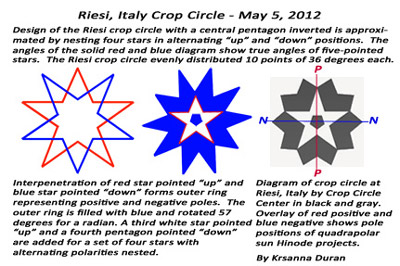 pentagram (5-pointed star) in the Riesi, Italy crop circle is at