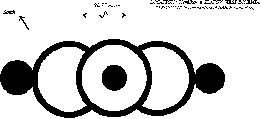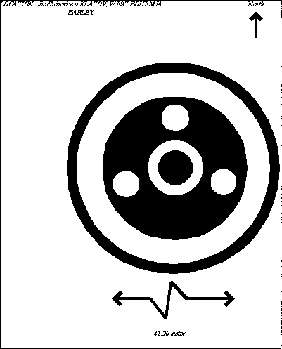 We have just been in a magnificent new formation. At last, a great pictogram (comparable with yours) appeared in this country ! It is situated in a crop called "tritical" (a combination of barley nad rye) 28.7.96