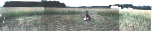 I took 3 rolls of slide film in the Indiana formation, 85% of which came out extremely dark or completely black -- mixed in was this overexposed bright line at the bottom of some of the frames. This also happened in the Sugar Creek circle. My Pentax camera flipped out. In the Sugar Creek grass circle I watched the light meter turn itself on and off and jump all over the place, I even showed it to the other people I was with so they could verify it. My friend Jason Braden had his brother's brand- new Minolta and it completely stopped working entirely!