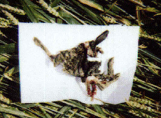 1. A squeezed rabbit between the flattened stalks, apparently dehydrated? Not done by the hoaxers.