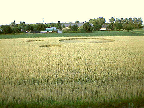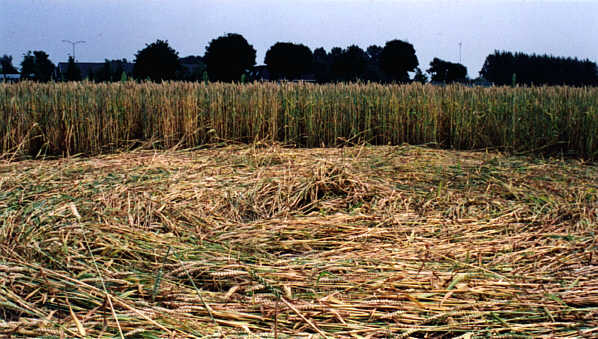 The field was visited by the DCCCS on Saturday 24th July, some samples were taken from a few plants,without the top plants, which stood right up, but had the typically slanting angle, as if something had cut of the plants. For the rest there were many broken plants. The formation was not very well visited. Only the farmer and some neighbours visited the field.