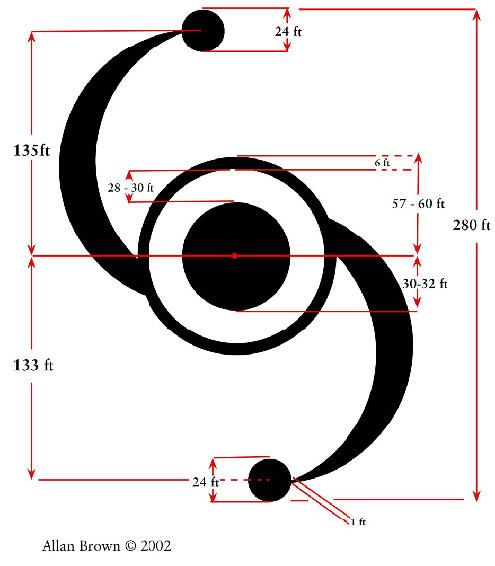 diameter, while the ring is 120' diameter and 6' wide. The arms