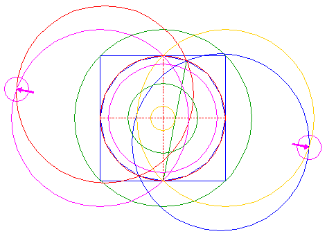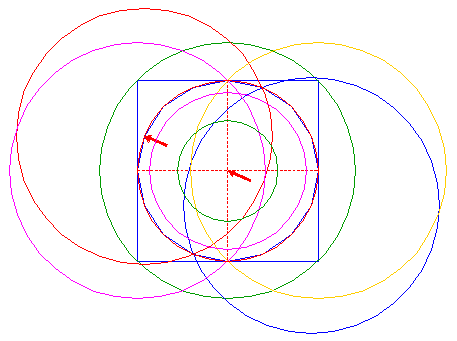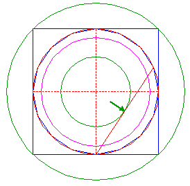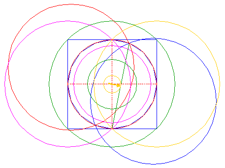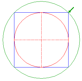 | Construct the inscribed circle of square 1. Draw the horizontal and vertical centerlines. |