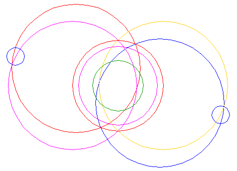 | Copy circle 14 another two times, to the lower intersection of circle 9 and rightmost circle 15, and to the upper intersection of circle 10 and leftmost circle 15. |