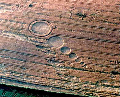 This formation the most impressive yet!! Consists of 7 circles in the traditional Oxford "Thought Bubble" pattern. No survey as yet. Located in field next to single circle reported by B. Taylor.