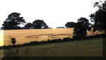 Also observed were trampled crop entering the field which ended in tractor tracks heading towards the formation. Attached to the main centre circle and following the circumference for approx. a third of the total distance is a 'tail' of crop approximately 1.5m/2.0m in width.