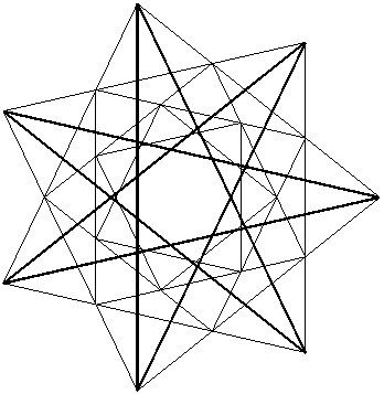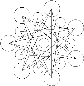 - The circles for the two sets of circles at the corners of both stars are derived from smaller, lower-order heptagons. To construct these, draw the "2nd corner" diagonals from the basic heptagram.