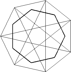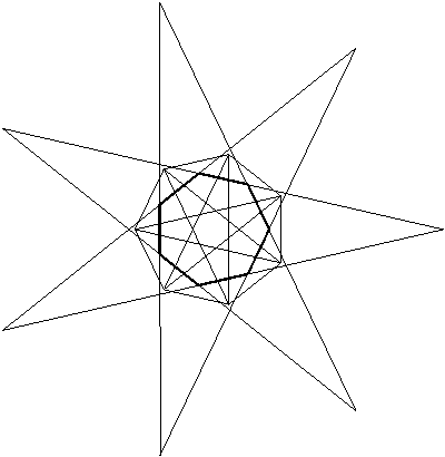 - Extend the sides of the basic heptagon until they cross. This will create a heptagram of greater size. The crosspoints define the corners of the next "higher-order" heptagon.