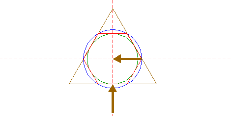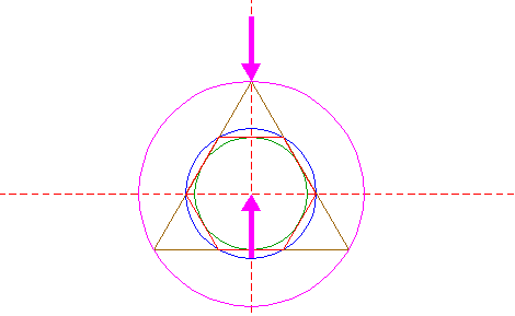 | Construct the circumscribed equilateral triangle of circle 3, pointing up. |