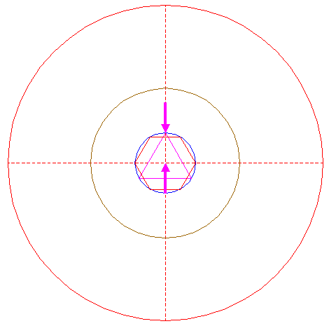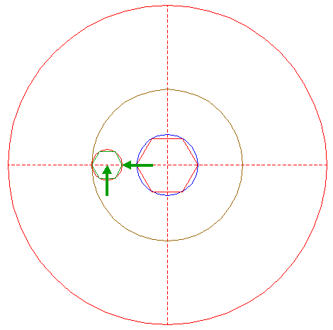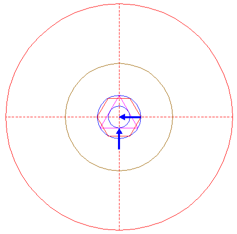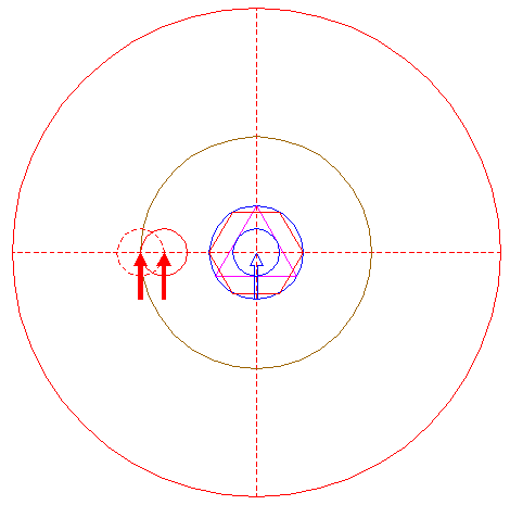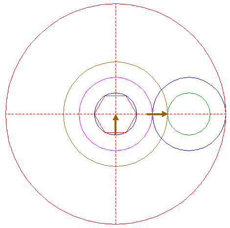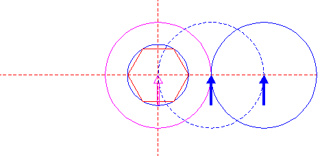 | Copy circle 5 to its righthand intersection with the horizontal centerline, and move this circle to the corresponding intersection of itself. |