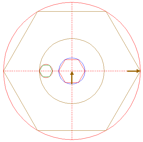 | Construct the inscribed hexagon of circle 12, pointing to the right. |