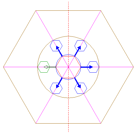 | Draw the six rays of hexagon 14, from the center to the angular points. |