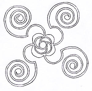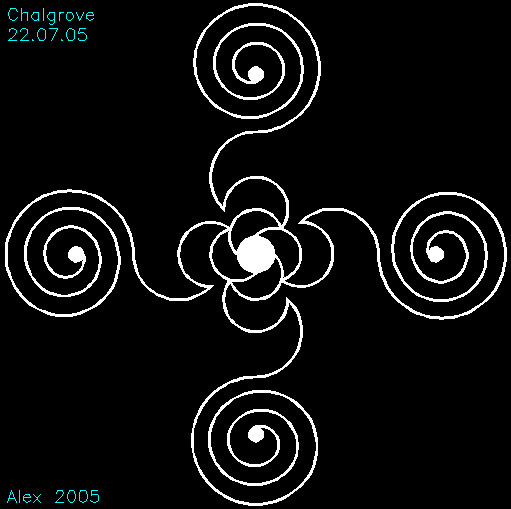 Celtic cross involving spirals pressed into the field.