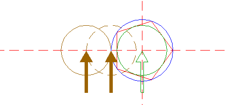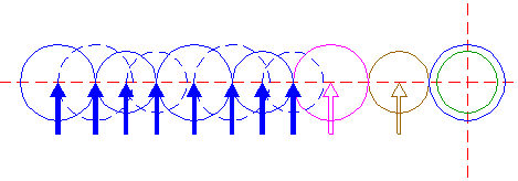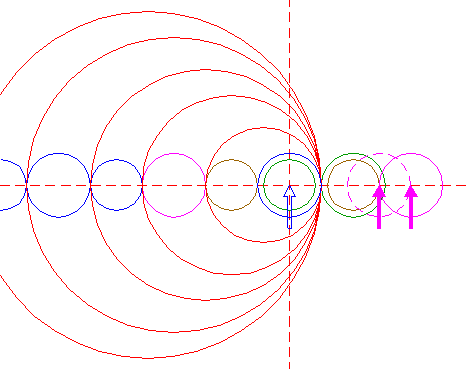 | Copy circle 1 to the righthand intersection of circle 9 and the horizontal centerline, and move this circle to its own righthand intersection.