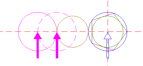 | Copy circle 1 to the lefthand intersection of circle 4 and the horizontal centerline. Move it to its own lefthand intersection.
