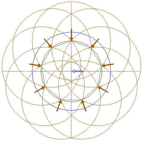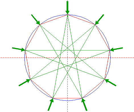 | Copy circle 1 nine times, to the angular points of nonagon 8. |