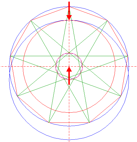 | Construct the inscribed nonagon of circle 4, pointing down. |