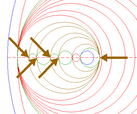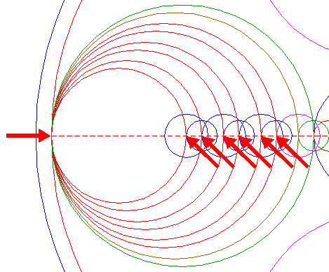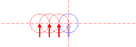 | Copy circle 1 to the lefthand intersection of the leftmost circle 4 and the horizontal centerline. |