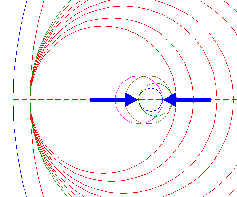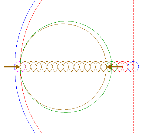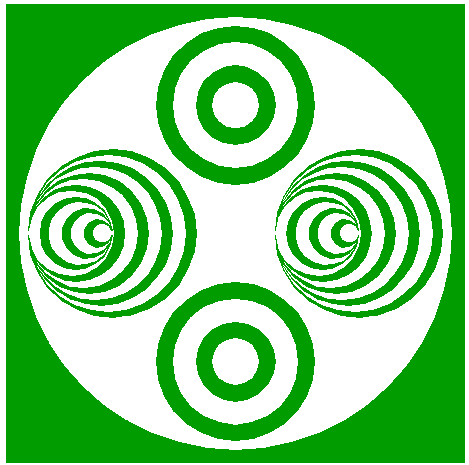 | Construct four two-points circles, all with one point at the righthand intersection of circle 18, the other points at the lefthand intersections of circles 23, all with the horizontal centerline. |