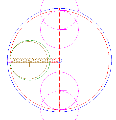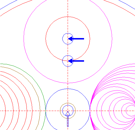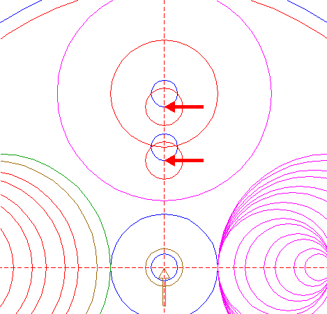 | Copy circle 14 two times, to the lower intersections of circles 26 and the vertical centerline. |