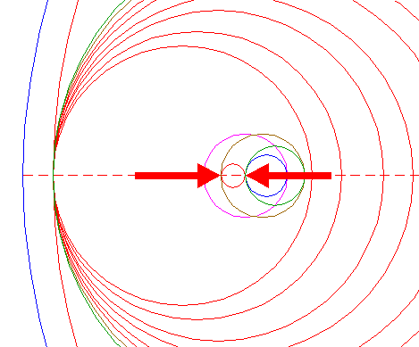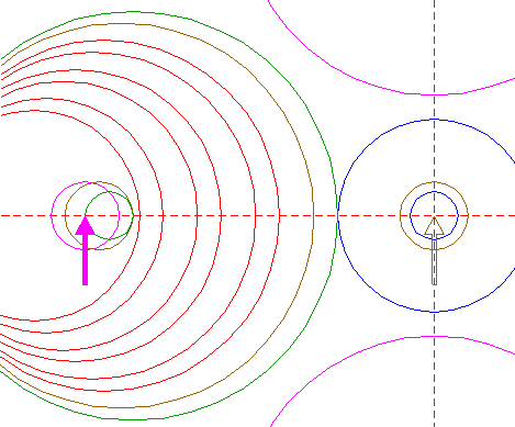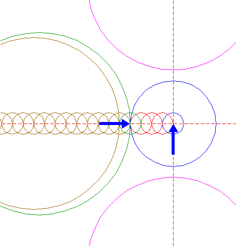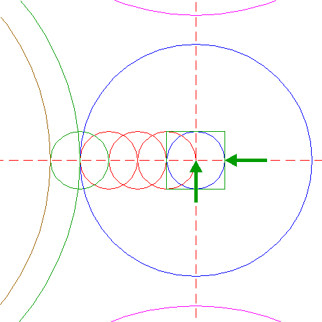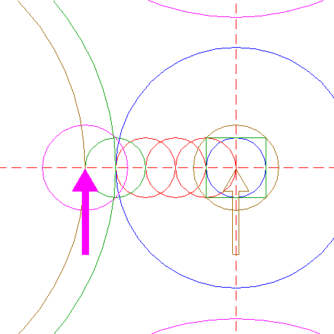 | Copy circle 14 to the center of circle 8. Move this circle to its own lefthand intersection with the horizontal centerline. |