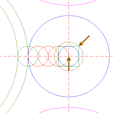 | Copy circle 14 to the lefthand intersection of circle 18 and the horizontal centerline. |