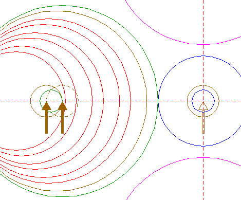 | Copy circle 1 to the lefthand intersection of the leftmost circle 2 and the horizontal centerline. |