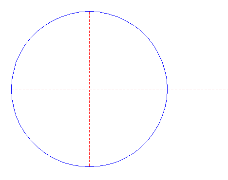 | Draw a circle. Draw the horizontal and vertical centerlines. Extend the horizontal centerline to the right. |