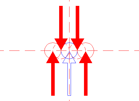 | Copy circles 1, 5 and 6 as one unit, taking the righthand intersection of circle 6 and the horizontal centerline as a reference-point, to the lefthand intersection of circle 5 and the horizontal centerline. Repeat this three times, consecutively to the leftmost intersections of the copied circles with the horizontal centerline, as shown. |