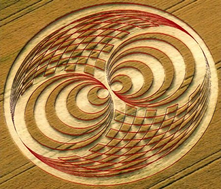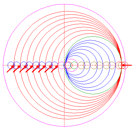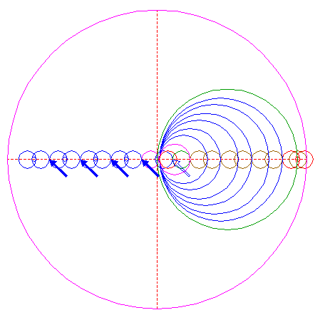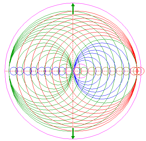 | Copy circles 1, 5 and 6 as one unit, taking the lefthand intersection of circle 5 and the horizontal centerline as a reference-point, to the righthand intersection of the rightmost circle 9 and the horizontal centerline. |