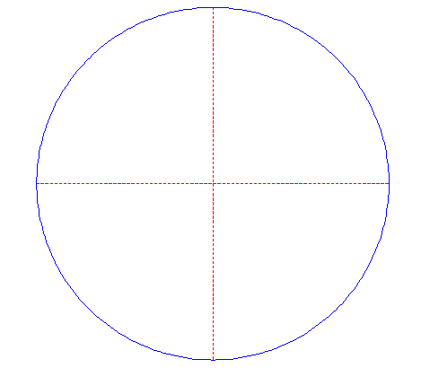 | Draw a circle. Draw the horizontal and vertical centerlines. |