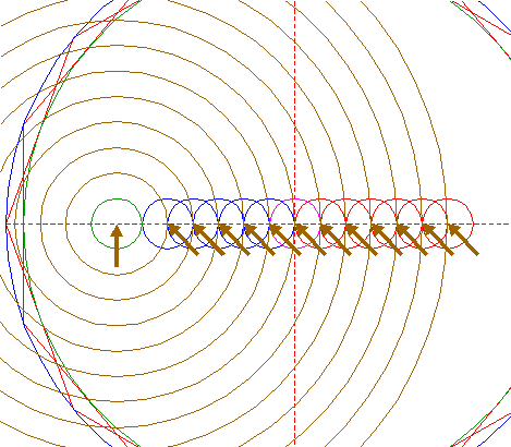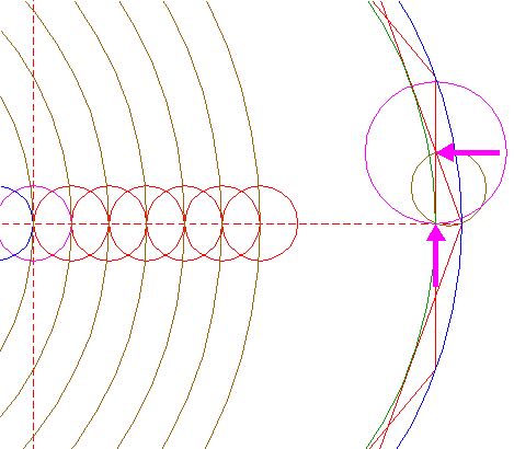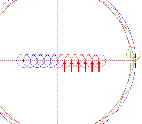 | Copy circle 10 to the righthand intersection of the rightmost circle 7 and the horizontal centerline. |