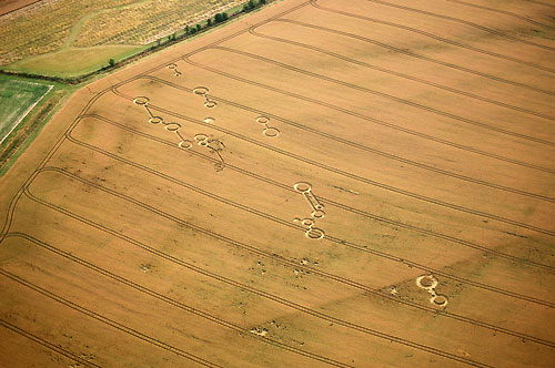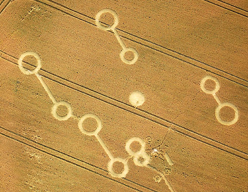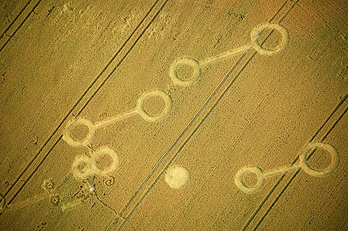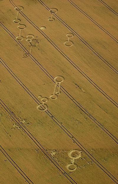 dumbbells. The lay of the crop spirals out from the off-centre tuft