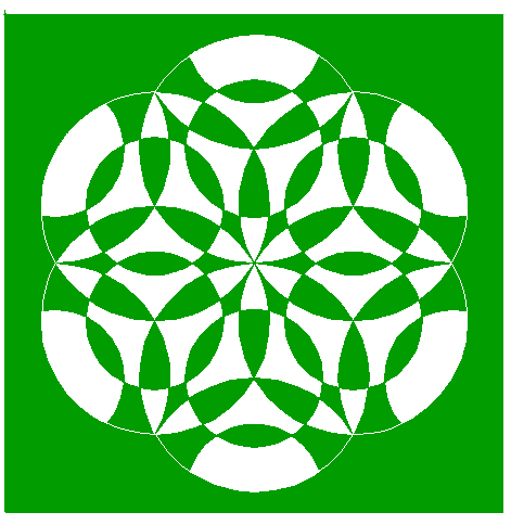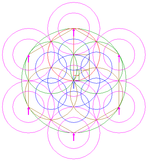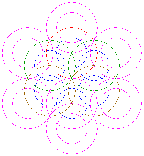 | Copy circle 6 two times, to its both intersections with circle 7. |