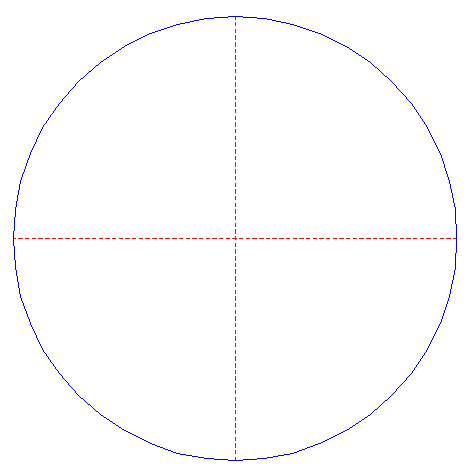 | Draw a circle. Draw the horizontal and vertical centerlines. |