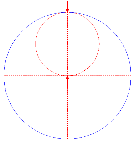 | Construct a "two-points" circle, defined by the end-points of a centerline, with one point at the center of circle 1, the other at the upper intersection of circle 1 and the vertical centerline. |
