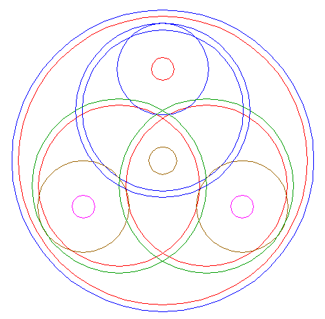 | Construct a circle concentric to circle 6, passing through the upper intersection of lefthand circle 8 and righthand circle 14. |