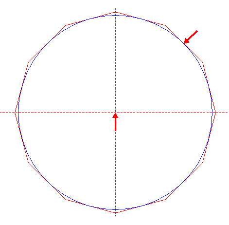 | Construct the circumscribed dodecagon (regular 12-sided polygon) of circle 1, pointing to the right. |
