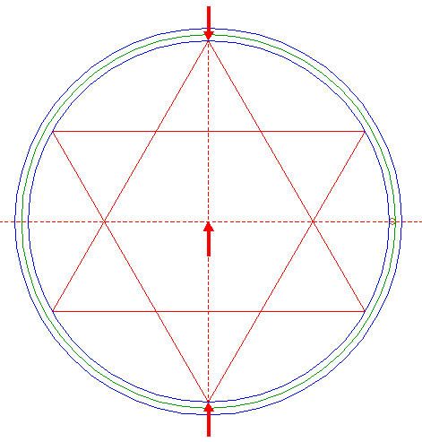 | Construct a "two-points" circle (defined by the end-points of a centerline), defined by the righthand intersections of circles 1 and 3 with the horizontal centerline. See detail. |