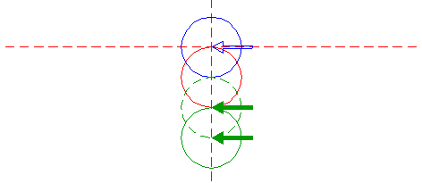 | Copy circle 1 to the lower intersection of circle 2 and the vertical centerline. Move this circle (copy and delete original) to its own lower intersection with the vertical centerline |