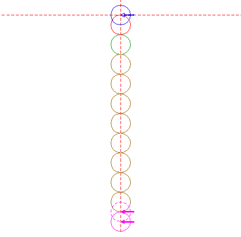 | Repeat step 3 once again, with respect to the last (lowest) circle 4, to yield eleven circles in total on a vertical row, head to tail, as shown. |