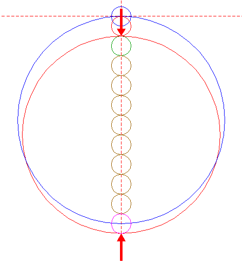 | Construct a two-points circle, with one point at the lower intersection of circle 3 and the vertical centerline, and the other point at the center of circle 5. |