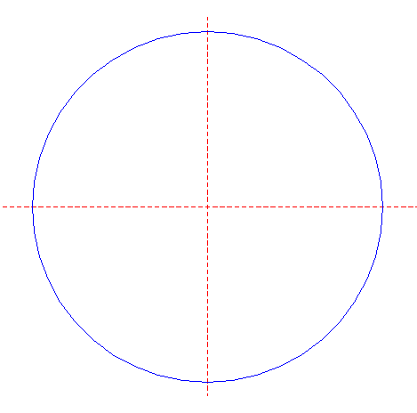 | Draw a circle. Draw and extend the horizontal and vertical centerlines. |