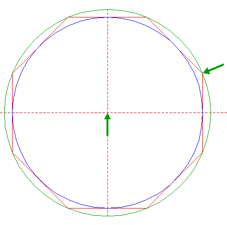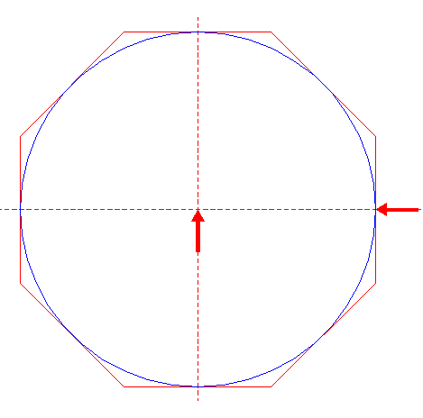 | Construct the circumscribed octagon (regular 8-sided polygon) of circle 1, with the mid-point of a side on the horizontal centerline. |