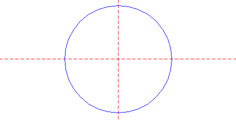 | Draw a circle. Draw and extend the horizontal and vertical centerlines. |