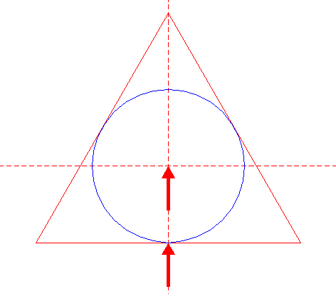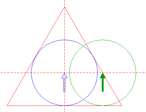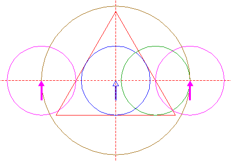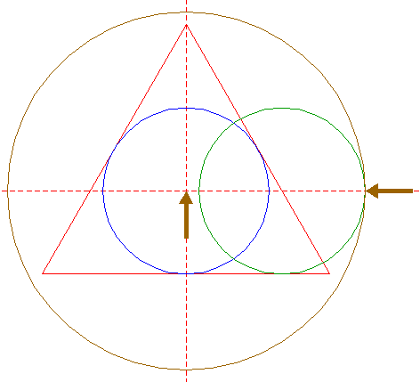| Construct the circumscribed equilateral triangle of circle 1, pointing up. |