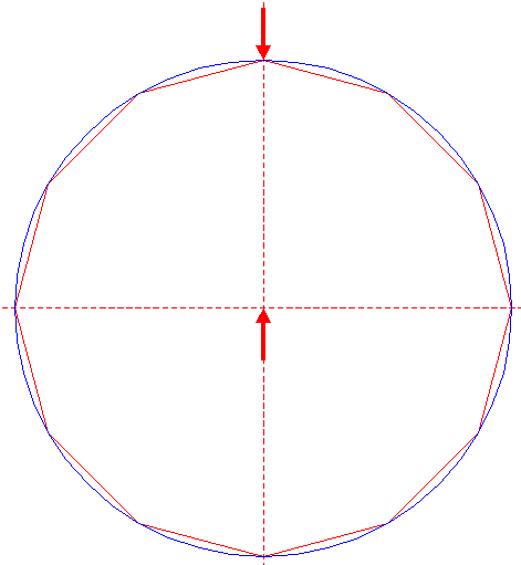 | Construct the inscribed dodecagon (regular 12-sided polygon) of circle 1, pointing up. |