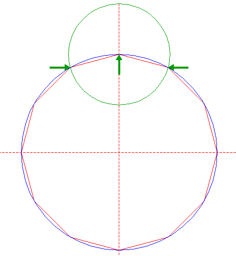 | Construct a circle centered at the top of dodecagon 2, passing through the angular points next to the top, left and right. |