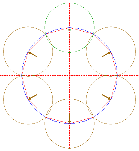 | Construct the circumscribed hexagon (regular 6-sided polygon) of circle 31, pointing to the right. |
